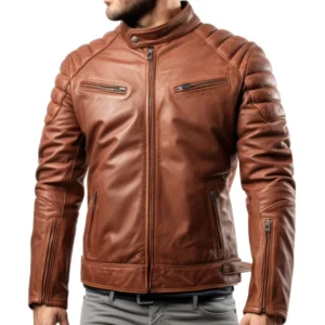 Mens Leather Biker Jacket Puffer Cafe Racer